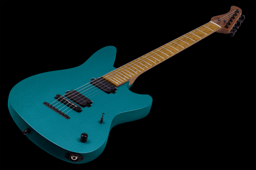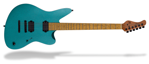 La Mayones Jassper DT se encuentra disponible en escalas regulares y barítonas de 6 y 7 cuerdas, y en varios acabados metálicos mate y se acompaña con un Mayones Hybrid Case,