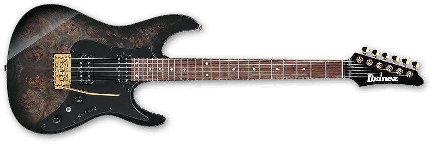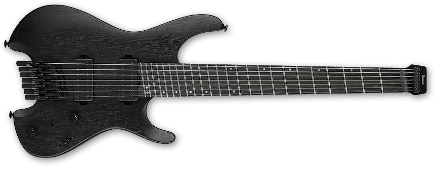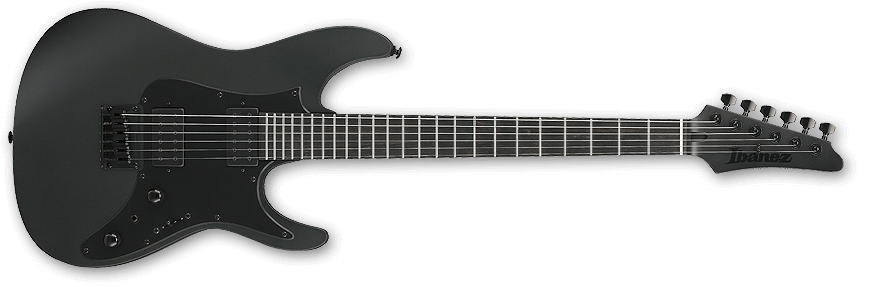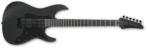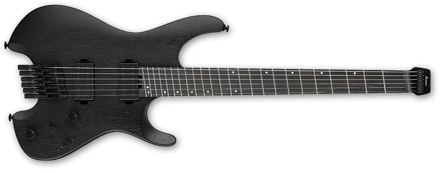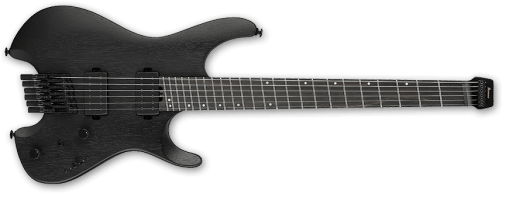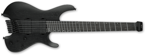 La ESP M-II CTM 7 FR ofrece el amplio rango de graves propio de un instrumento de siete cuerdas. Disponible en el exclusivo acabado Black Lava de ESP, esta guitarra cuenta con una construcción set-thru de 25.5″, uniendo robustamente un cuerpo de aliso a un mástil de arce de tres piezas delgado en forma de U. Tiene un diapasón de ébano con radio de 305 mm que incluye incrustaciones de barra desplazadas, puntos laterales Luminlay, una pala a juego invertida y 24 trastes extra jumbo de acero inoxidable. Los componentes incluyen herrajes negros, cierres de correa ESP, clavijeros con bloqueo Gotoh, un trémolo Floyd Rose Original y un juego de pastillas activas EMG 57-7H (puente) y EMG 66-7H (mástil) con cubiertas de cromo negro cepillado.
