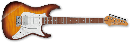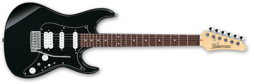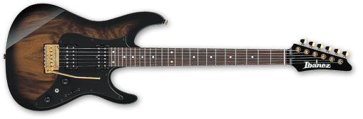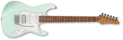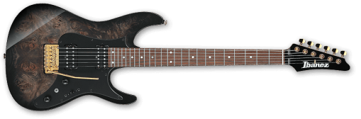 La ESP EX viene con el acabado Black/Andromeda-II, con sus biseles iridiscentes que cambian de color según la incidencia de la luz. Es una set-thru de escala de 25.5”, con un cuerpo de caoba de Honduras combinado con un mástil delgado de arce de tres piezas en forma de U. Su diapasón de ébano tiene un radio de 305 mm, con 22 trastes extra jumbo de acero inoxidable, incrustaciones triangulares, puntos laterales Luminlay y una cejuela de grafito. Sus componentes incluyen herrajes de níquel negro, cierres de correa ESP, clavijeros con bloqueo Gotoh, un puente y cordal TonePros con bloqueo estilo TOM, y un juego de excelentes pastillas EMG 57 (puente) y EMG 66 (mástil) con cubiertas de níquel negro.