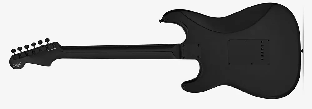 La guitarra está cubierta con un acabado de uretano negro brillante y tiene un golpeador fenólico de una capa pintado de negro.