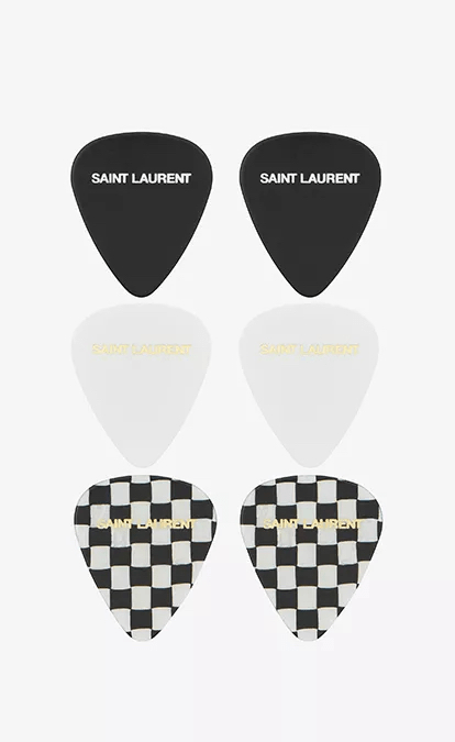 Finalmente, como el pack más asequible de la serie, hay un juego de seis púas de Saint Laurent presenta dos negras, dos blancas y dos púas ajedrez y vienen en una lata de colección y cuestan solo $32.
