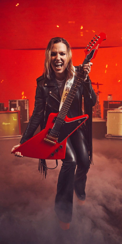 Lzzy Hale, la primera embajadora de la marca Gibson, es conocida por sus explosivos directos con su banda Halestorm. Su nueva Explorerbird es una guitarra de rock duro y de gran apariencia. Combina la forma del cuerpo del clásico Explorer y un clavijero Non-Reverse Firebird en un modelo de artista que seguramente llamará la atención. El acabado de laca de nitrocelulosa Cardinal Red se complementa con herrajes y trastes dorados… e incluso tornillos y varillas dorados en las potentes pastillas 70s Tribute.