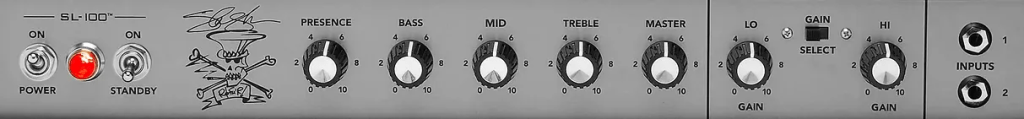 El SL-100 combina ese circuito de estilo vintage (activado con el interruptor Lo) con un nuevo canal de ganancia Hi, inspirado en los tonos posteriores del Marshall JCM800 que definieron los primeros trabajos de Slash en Guns N’ Roses.