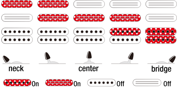 Como no podía ser de otra forma, monta un set Dimarzio HSS con un dos The Cruiser en mástil y central y una AT-1 en el puente, todas ellas humbuckers pasivas cerámicas.