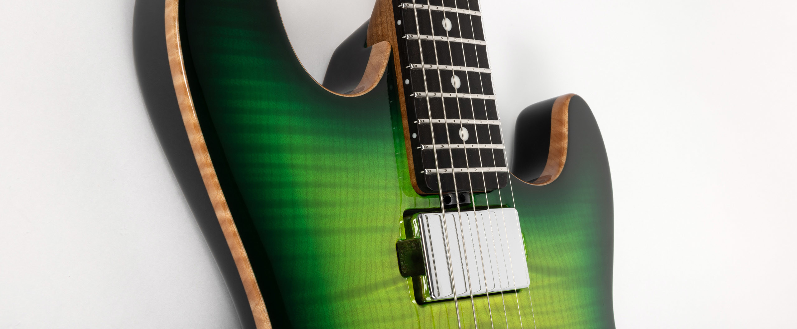 Por lo demás, se trata de unas Sabres estándar, con un cuerpo de okume con tapa de arce veteado, un mástil de arce veteado tostado y un diapasón de arce veteado tostado o de palisandro, según el acabado elegido.