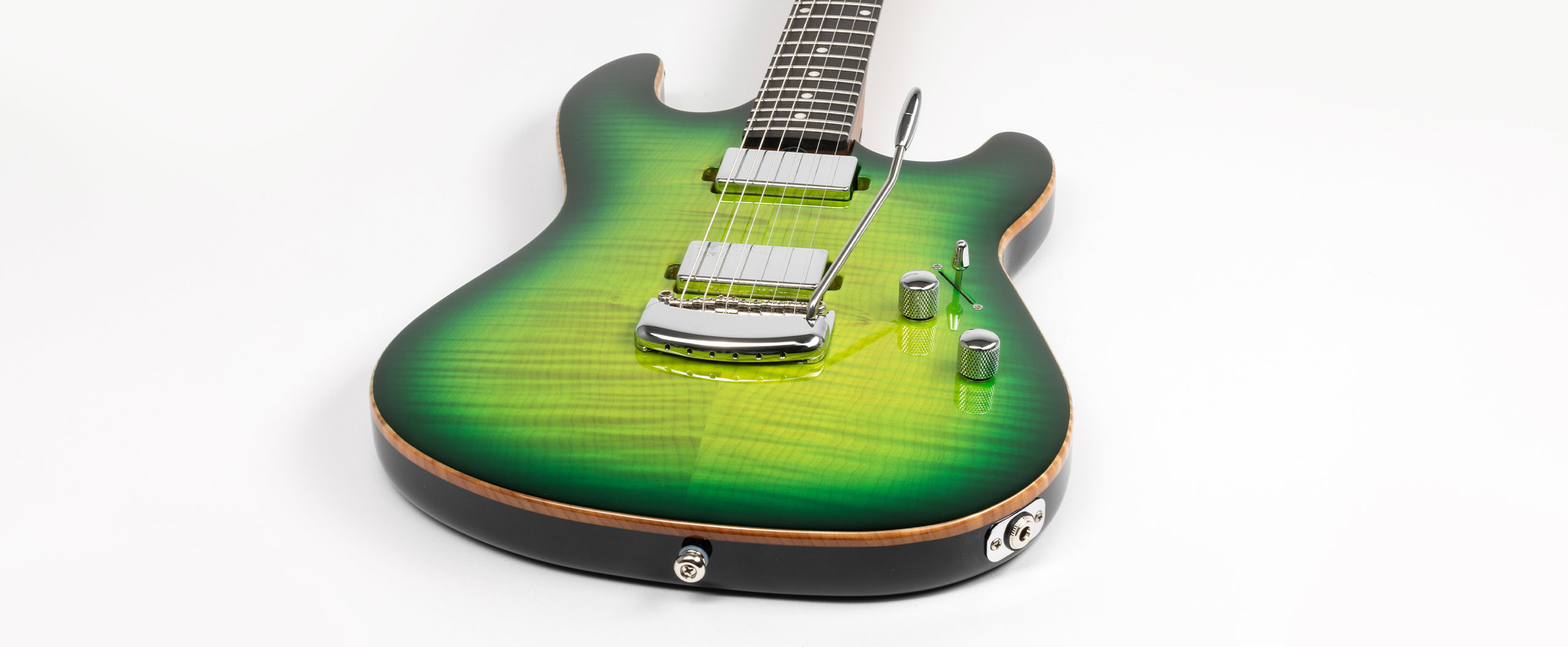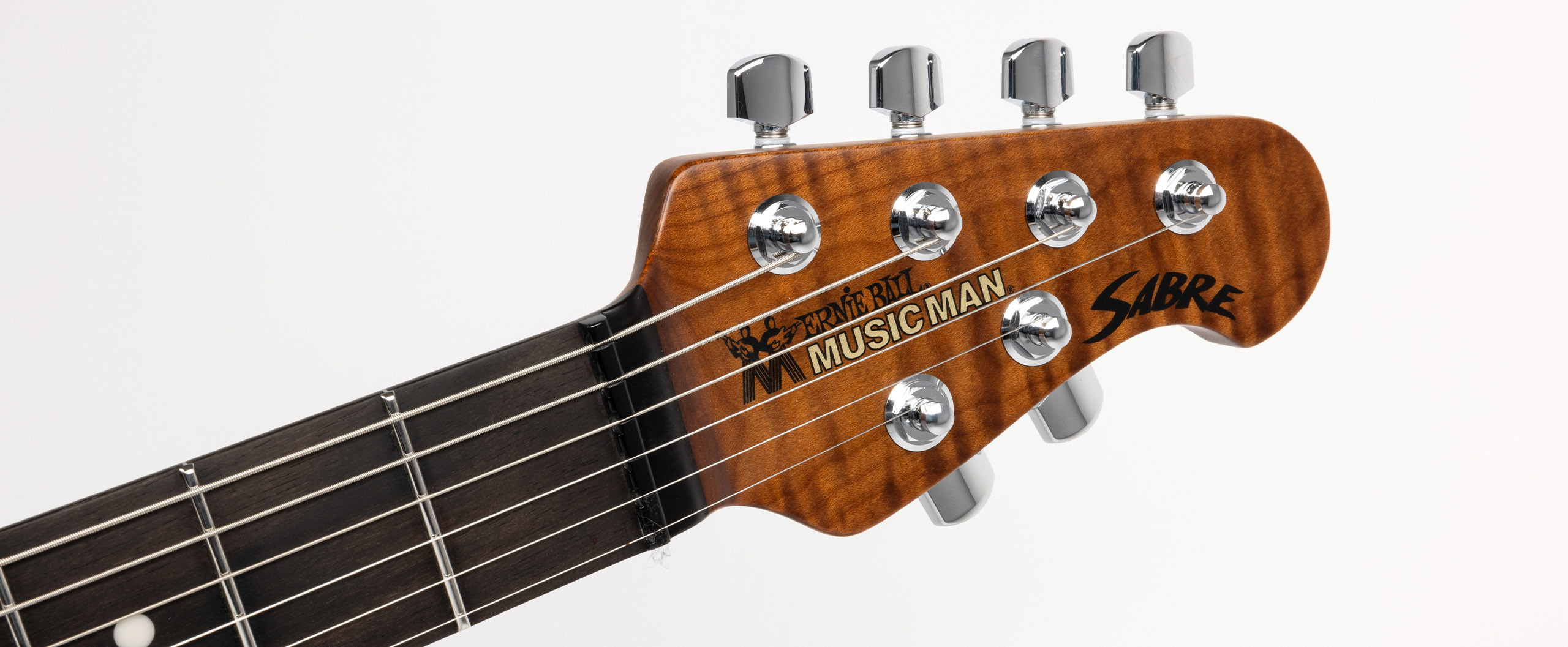 A estos se suman 22 trastes de acero inoxidable, clavijas de bloqueo Schaller y un trémolo Music Man Modern con tapa en forma de media luna y silletas de acero dobladas. Todo ello parece dar como resultado lo que quizás sea la mejor versión de la Sabre hasta el momento.