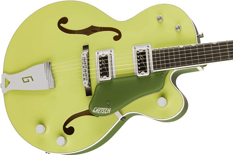 La versatilidad de la guitarra se ve reforzada por los controles de volumen de las pastillas individuales, un control de volumen maestro con sangrado de agudos y un interruptor de tono de tres posiciones. Con un puente de selletas de rodillos TonePros TP6R y un cordal Gretsch G-Cutout, el instrumento también ofrece alta precisión y comodidad al tocar.