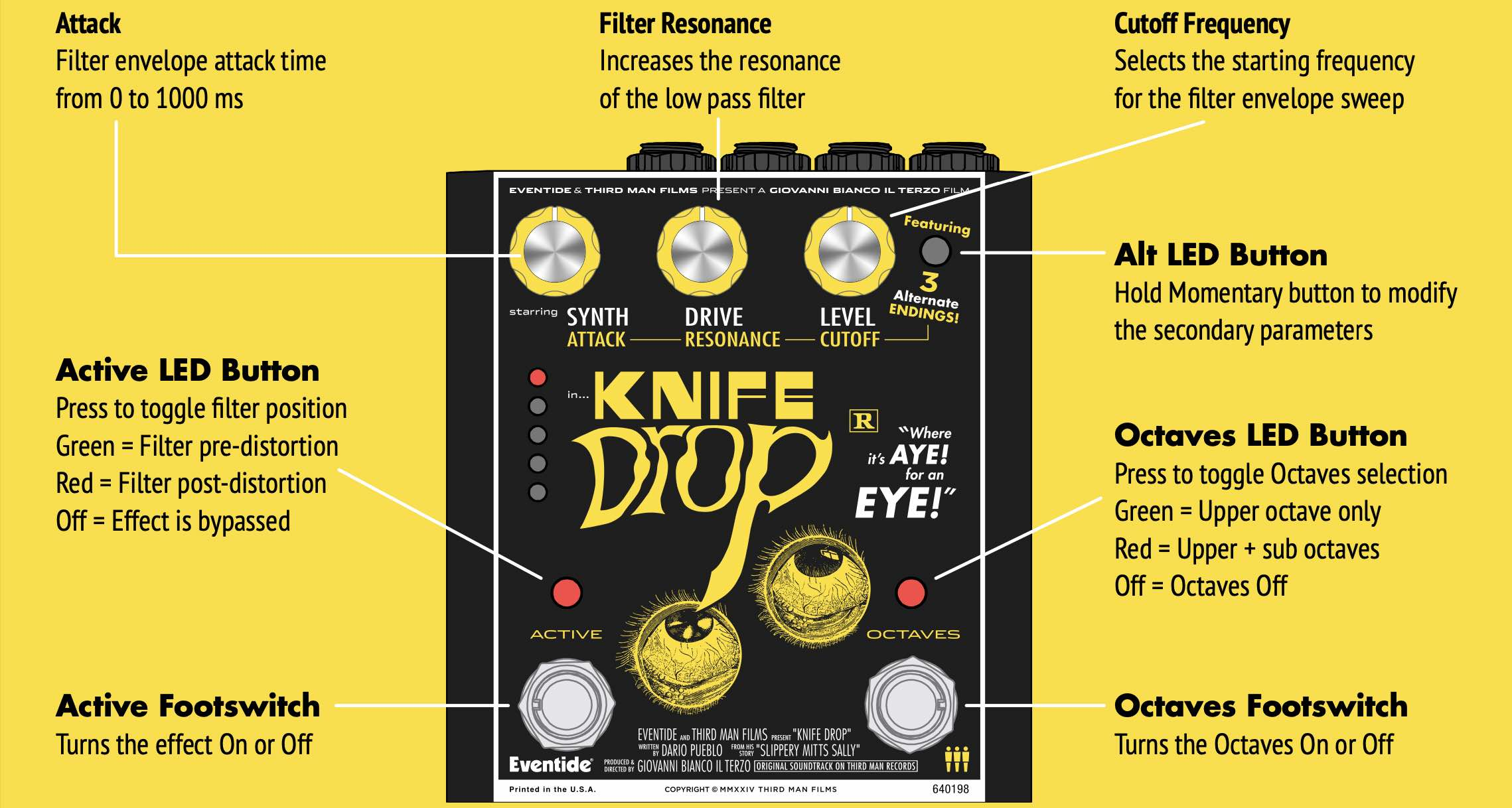 Knife Drop es la nueva colaboración de Eventide y Third Man Hardware con Jack White. Este último efecto combina un sintetizador mono, fuzz y más en una unidad compacta.