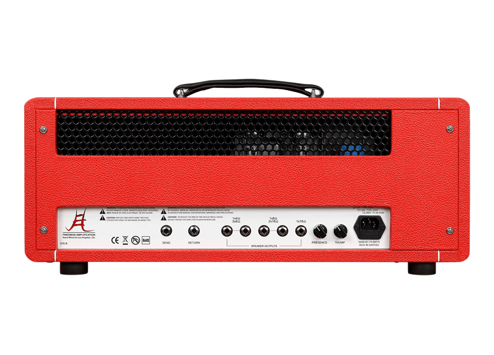 El amplificador también tiene un control Thump en la parte trasera que varía la respuesta baja de la sección de potencia del amplificador y una Presence que ajusta el contenido de gama alta de la sección de potencia del amplificador. Como siempre con Friedman, tiene el bucle de efectos de serie ultratransparente y es perfecto para usar con tus pedales favoritos.