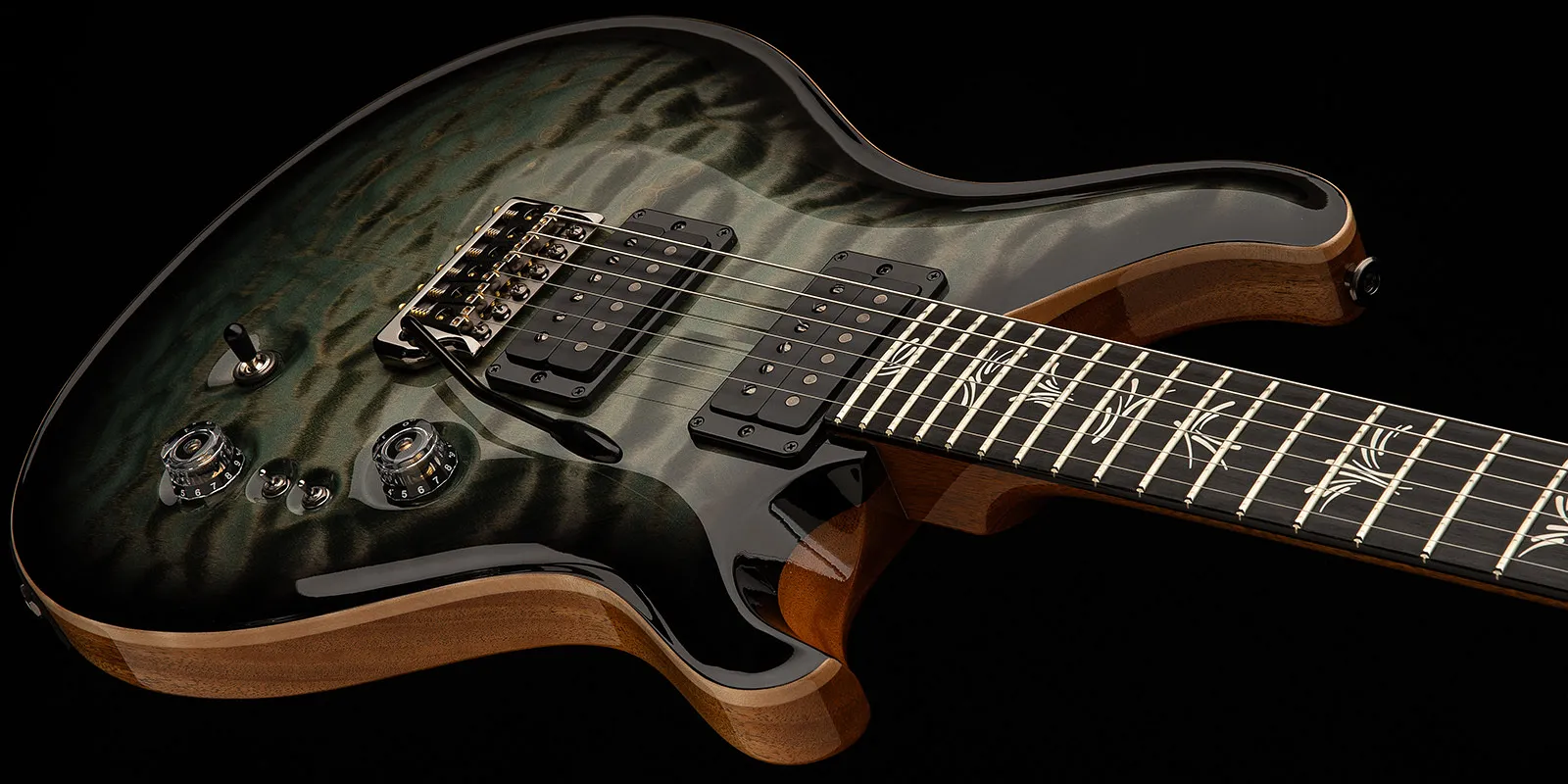 Las pastillas PRS 85/15 ofrecen una claridad excepcional con una gama completa de tonos. Los dos miniinterruptores de palanca permiten una humbucking potente y sonidos nítidos de bobina simple en un solo instrumento… algo imprescindible para tocar solos en hard rock y metal. Otras opciones personales de Kanami incluyen una tapa de arce acolchado, un diapasón de ébano con incrustaciones de pájaros Brushstroke y herrajes negros. Kanami también eligió el color de tinte visualmente llamativo: Trampas Green Smokeburst. Lista para viajar a cualquier concierto, la PRS Kanami Limited Edition se envía en el nuevo estuche moldeado multiajuste PRS ATA.