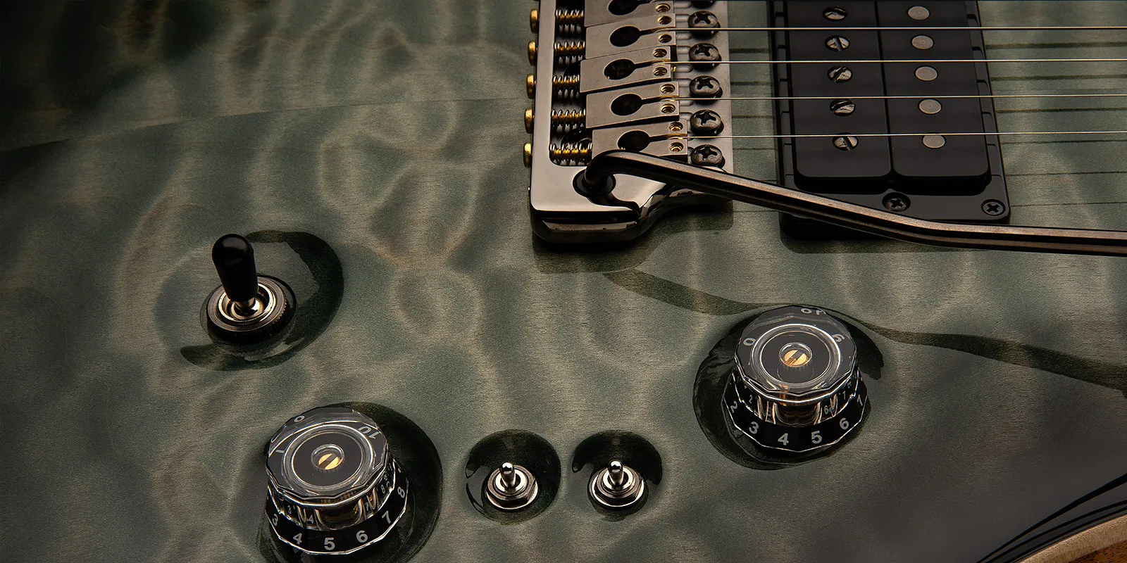“PRS siempre ha sido una parte esencial del sonido de Band-Maid desde que comencé a tocar la Custom 24. Al pensar en las especificaciones de mi modelo signature, el diseño de controles de la Custom 24-08 fue la mejor opción como base, porque muchas canciones de la banda requieren la nota E alta en el traste 24, y a menudo alterno entre sonidos de humbucker y single-coil. En cuanto al acabado de color, elegí Trampas Green Burst. Este es el color de mi primera PRS que compré cuando decidí convertirme en guitarrista profesional con Band-Maid. Uno de mis sueños de tener mi propio modelo signature se ha hecho realidad aquí, y diría que esta guitarra es una extensión de mi primera PRS. ¡Qué honor!” – Kanami / Band-Maid
