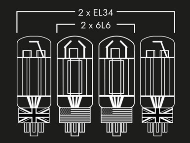 El St. James 100 presenta un conjunto de características innovadoras que lo distinguen de la competencia. En su núcleo se encuentra la innovadora configuración de válvulas de potencia conmutables y mezclables, que incorpora dos tipos distintos de válvulas de potencia, 2x 6L6 y 2x EL34. Se pueden alternar entre ellas o combinarlas mediante un interruptor en el panel frontal, lo que permite a los músicos seleccionar el funcionamiento a 50 vatios para sabores tonales específicos o activar las cuatro válvulas para la experiencia completa de 100 vatios, desbloqueando una amplia gama de posibilidades tonales.