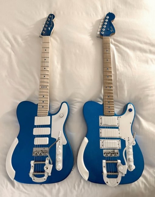 «Quería mostrarles a todos un adelanto de la primera Triplecaster de edición limitada de Fender Custom Shop (a la izquierda)», dice White en su publicación. «¡Pueden ver todos los cambios sutiles que se han producido en comparación con el modelo Frankenstein de todos los años de pruebas en carretera junto a ella a la derecha!»