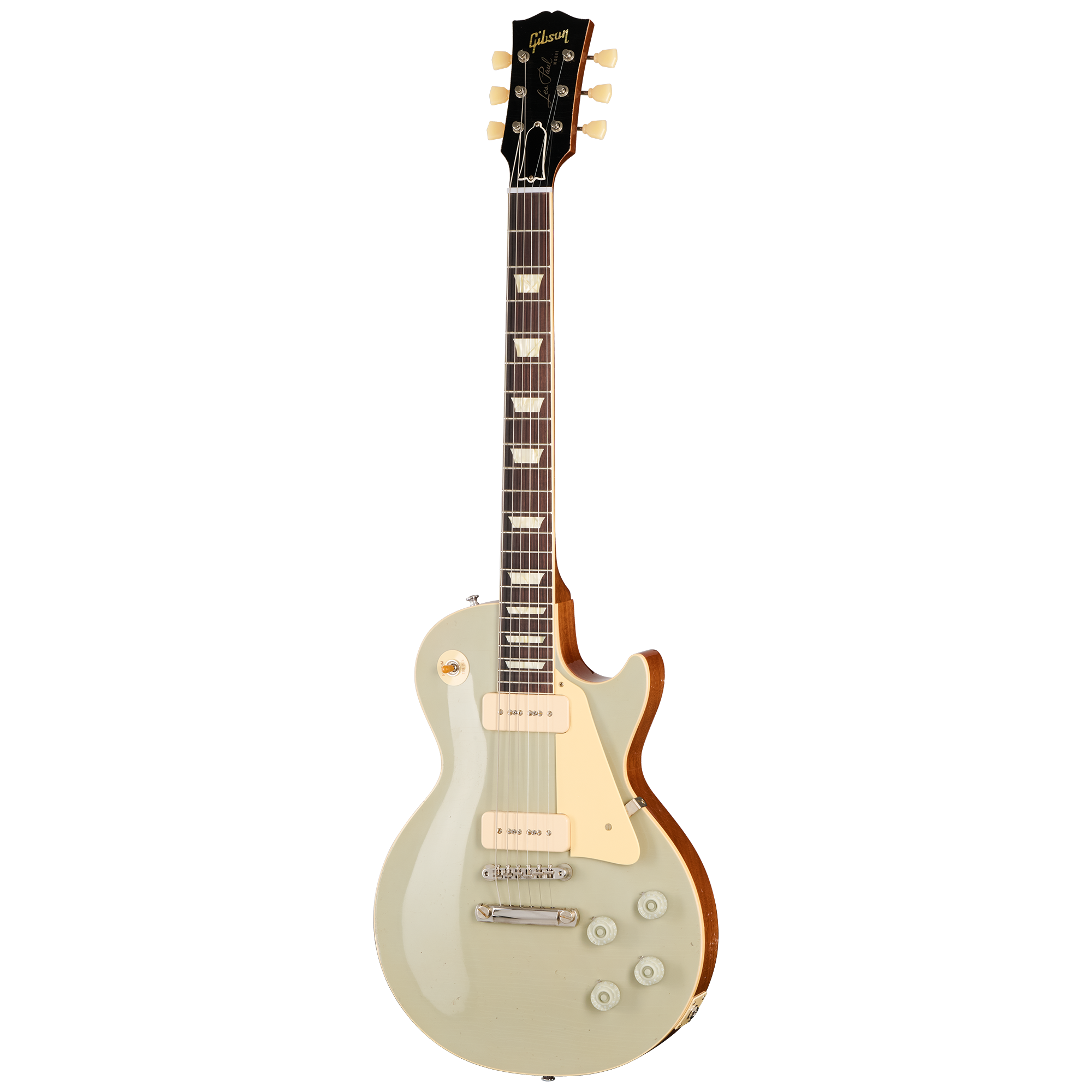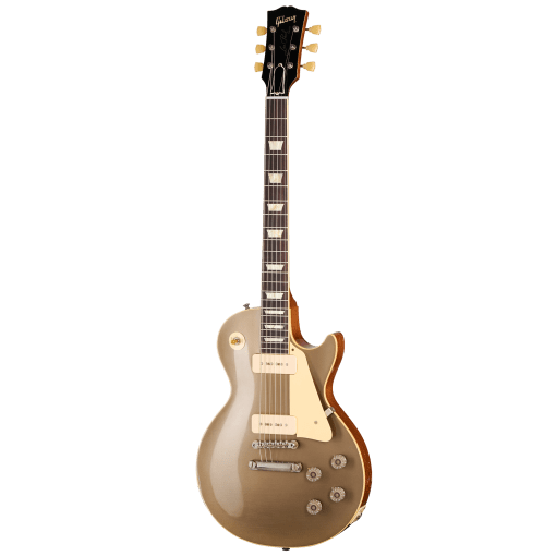 El mástil de caoba de una sola pieza long tenon tiene un perfil grueso en forma de D estilo años 50 y un diapasón de palo de rosa indio con 22 trastes históricos estrechos/altos, un radio de diapasón de 12” y está adornado con incrustaciones trapezoidales de nitrato de celulosa envejecido. La pala cuenta con una chapa de madera de acebo con un logotipo bajo fiel a la época, está equipada con una cejuela de nailon y clavijas de afinación Kluson, y tiene un número de serie histórico de la tirada limitada de 1955 en la parte posterior. Las pastillas Custom Shop Shop P-90 Soapbar color crema están conectadas a mano a potenciómetros CTS 500k y condensadores PIO.