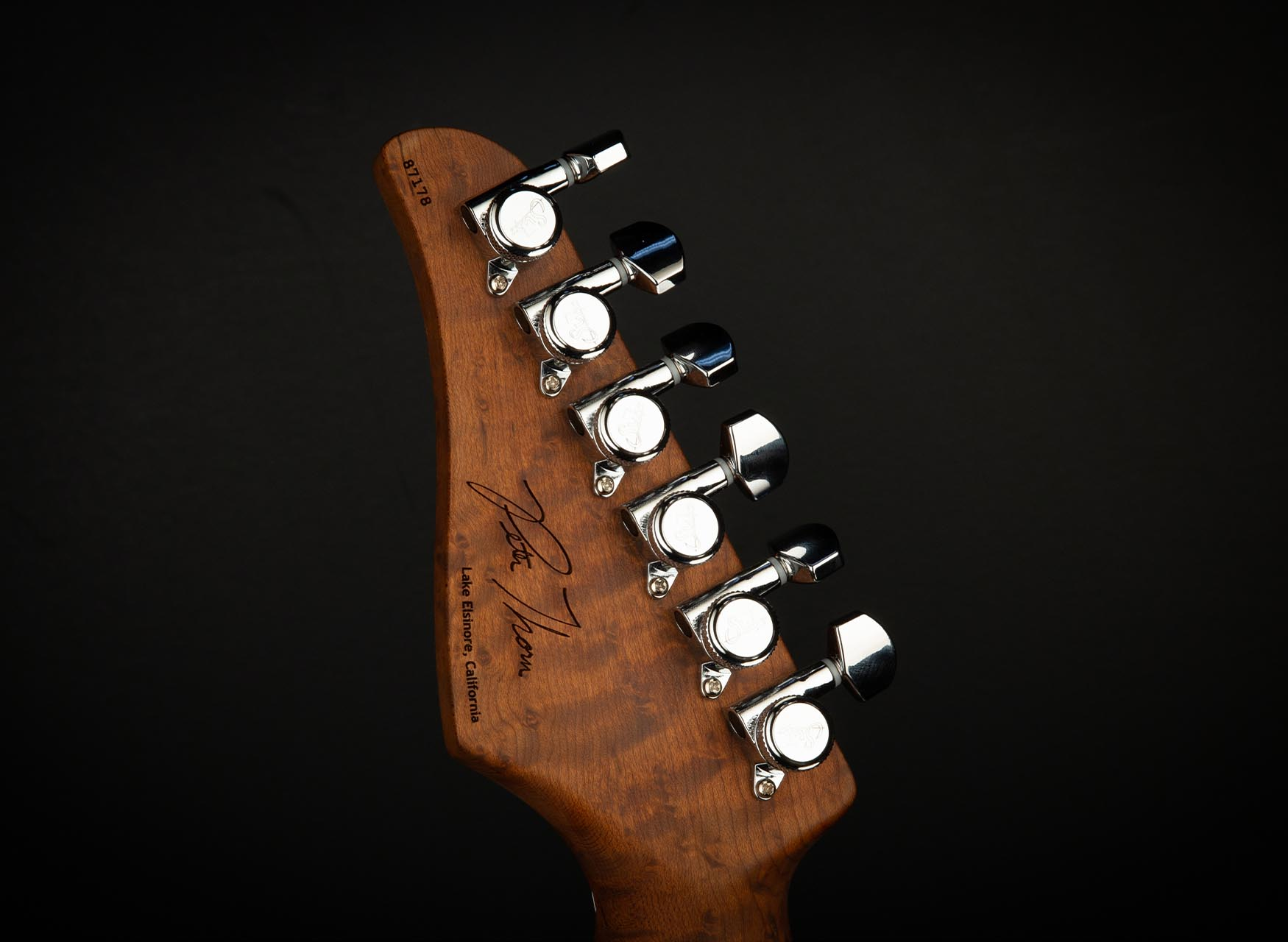 La PT Traditional 90 es la máxima expresión de la búsqueda de Pete Thorn por el sonido y la facilidad de ejecución y está diseñada para guitarristas que buscan la esencia de las guitarras vintage tipo ST con las mejoras modernas que exigen los profesionales. Cuerpo de aliso, mástil y diapasón de arce tostado flameado 3A con perfil Pete Thorn 60’s Soft V, 22 trastes de acero, golpeador de diseño propio y hardware cromado completan las principales especificaciones del nuevo modelo signature de Pete Thorn.