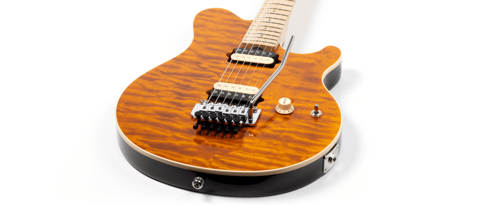 La Axis presenta un diseño de cuerpo de un solo cutaway, perfectamente equilibrado, que permite un acceso inigualable a los 22 trastes de acero inoxidable. El mástil de arce figurado de primera calidad, con un tallado asimétrico personalizado, proporciona una experiencia de interpretación ultracómoda.