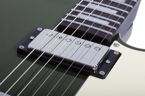 La configuración de pastillas es de doble humbucker (montadas en marcos), con una Schecter Pasadena Classic en el mástil y una Schecter Pasadena Plus en el puente, ambas con cubiertas cromadas.