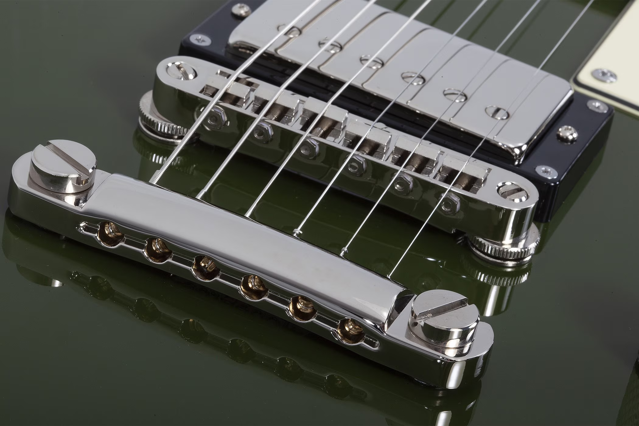 La nueva Schecter PT signature de Jack Fowler incorpora, como elementos destacados, un cuerpo de fresno con acabado Dab Green, configuración de doble humbucker y puente TonePros Locking Tune-O-Matic.