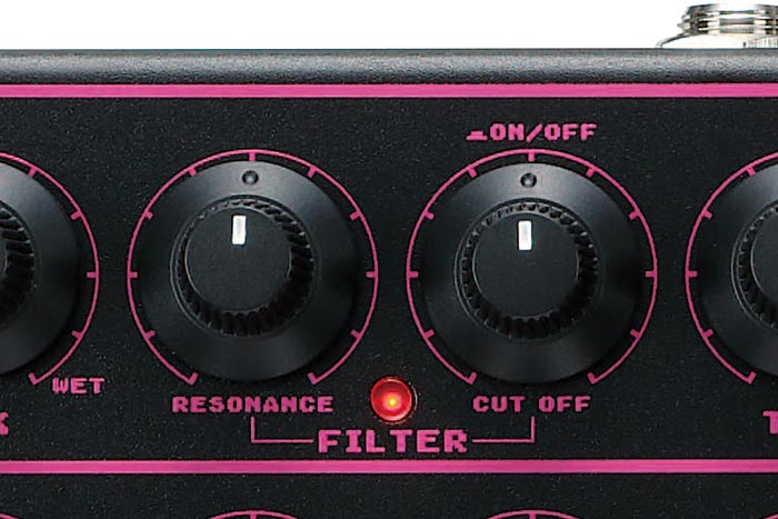 Filter: este efecto emula el clásico filtro de escalera paso bajo, sello distintivo de los sintetizadores Moog. La alta Resosnancia con frecuencia de corte ajustable proporciona el carácter distintivo y dinámico del filtro de escalera Moog. La Resonancia cero proporciona una respuesta de filtro paso bajo más estándar.