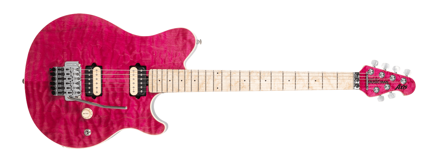 Lanzada por primera vez en 1996, la Axis se ha convertido en un modelo emblemático de EBMM, y las guitarras de esta nueva colección se mantienen fieles al diseño original con un mástil asimétrico clásico que ofrece comodidad y facilidad de ejecución, 22 trastes de acero inoxidable y un mástil de arce flameado con puntos laterales que brillan en la oscuridad.