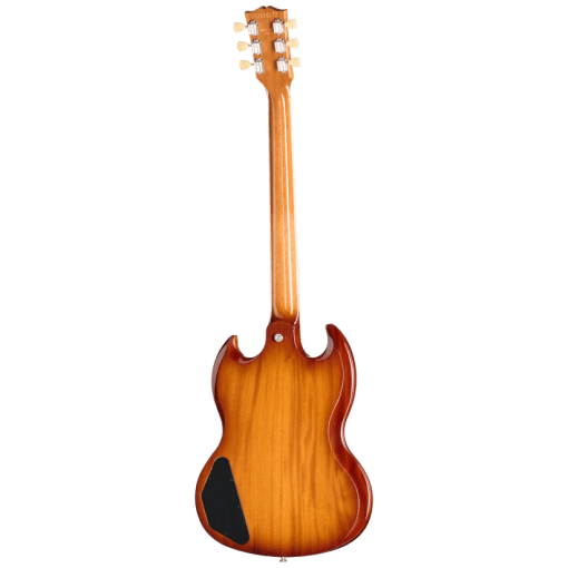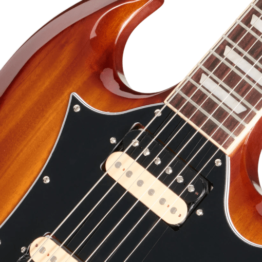 La Sadler Vaden SG Standard cuenta con un cuerpo de caoba maciza con diseño de doble cutaway y biseles profundos. El acabado Natural Burst, realizado con laca de nitrocelulosa brillante, se ha igualado cuidadosamente para capturar el tono del acabado envejecido de su guitarra, de 21 años de antigüedad, que ha adquirido un tono más cálido y marrón con el tiempo.