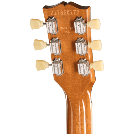 El mástil de caoba tiene un cómodo perfil redondeado y está equipado con un diapasón de palisandro con 22 trastes medium jumbo e incrustaciones trapezoidales de acrílico. La pala luce el logotipo de Gibson y una corona incrustados en nácar, mientras que la cejuela Graph Tech y los clavijeros Vintage Deluxe con botones de llave garantizan una afinación sólida. Como toque personal, la tapa del alma de dos capas en blanco y negro lleva las iniciales de Sadler en lugar de la habitual SG.
