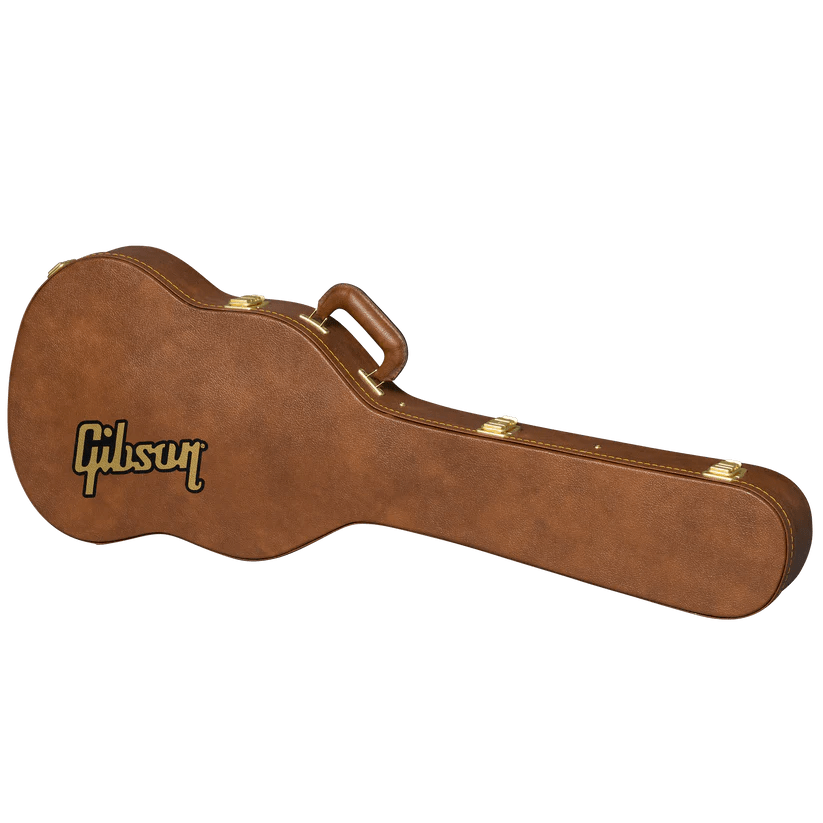 La Sadler Vaden SG Standard viene en un estuche rígido marrón, junto con una tarjeta coleccionable de Sadler Vaden, una colección de pegatinas exclusivas inspiradas en Sadler y una correa personalizada.