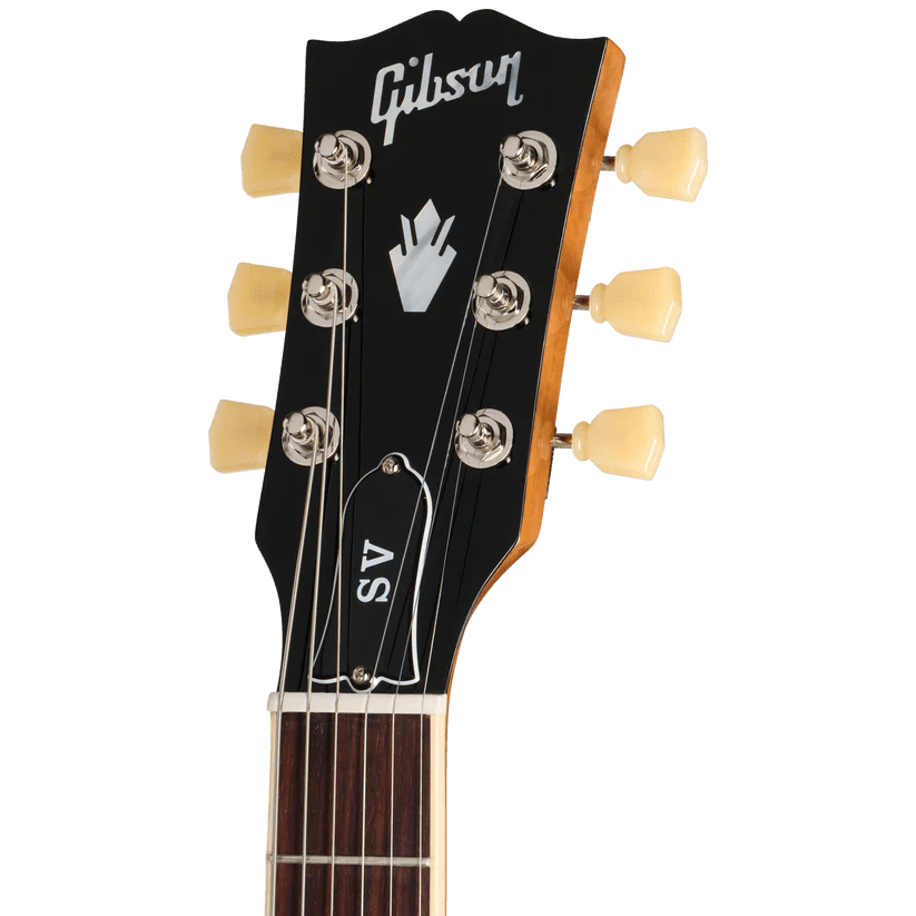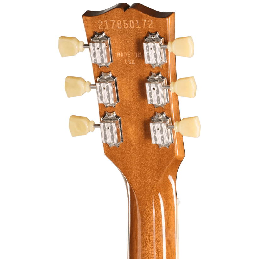 El mástil de caoba tiene un cómodo perfil redondeado y está equipado con un diapasón de palisandro con 22 trastes medium jumbo e incrustaciones trapezoidales de acrílico. La pala luce el logotipo de Gibson y una corona incrustados en nácar, mientras que la cejuela Graph Tech y los clavijeros Vintage Deluxe con botones de llave garantizan una afinación sólida. Como toque personal, la tapa del alma de dos capas en blanco y negro lleva las iniciales de Sadler en lugar de la habitual SG.