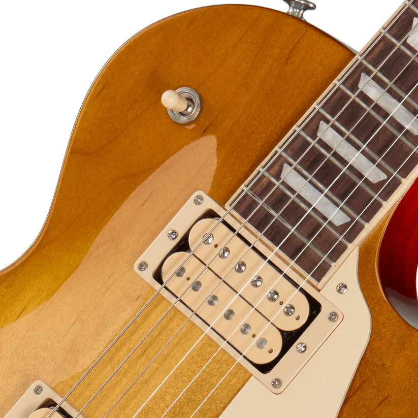 Sus pastillas son humbuckers Gibson Burstbucker Pro, bobinadas para ofrecer potencia, articulación y respuesta dinámica, y con bobinas Double Classic White sin revestimiento, un sutil pero efectivo toque distintivo del estilo Les Paul.