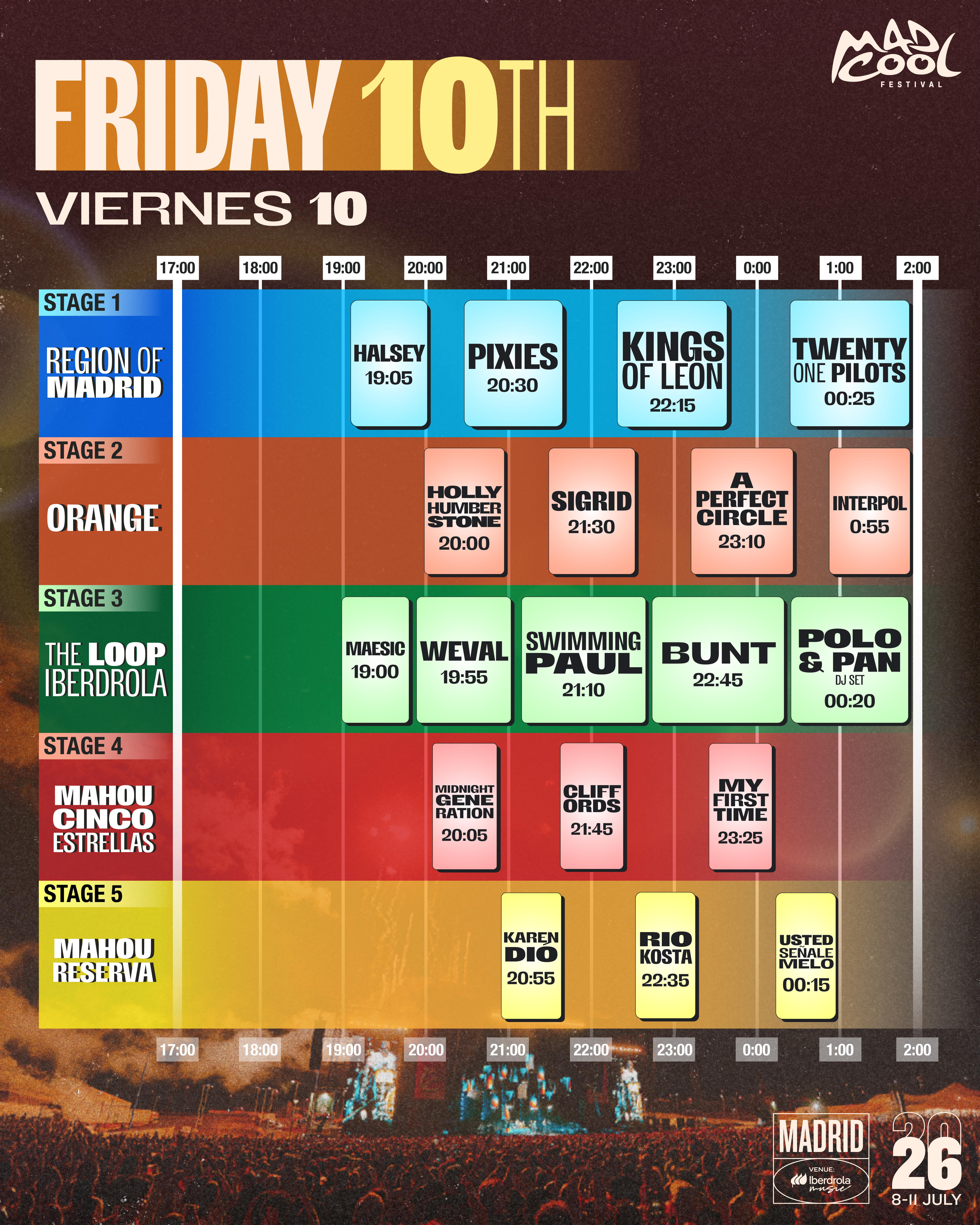 El cartel de esta edición tan especial se encuentra ya completamente definido en los tres escenarios donde el público vibrará con grandes conciertos.