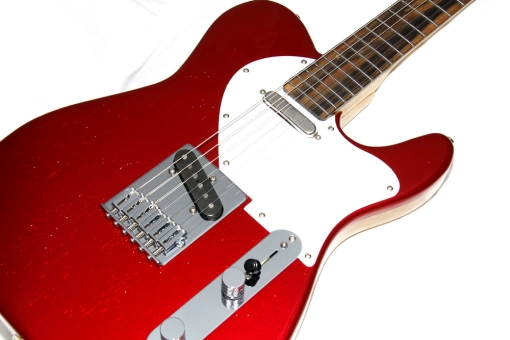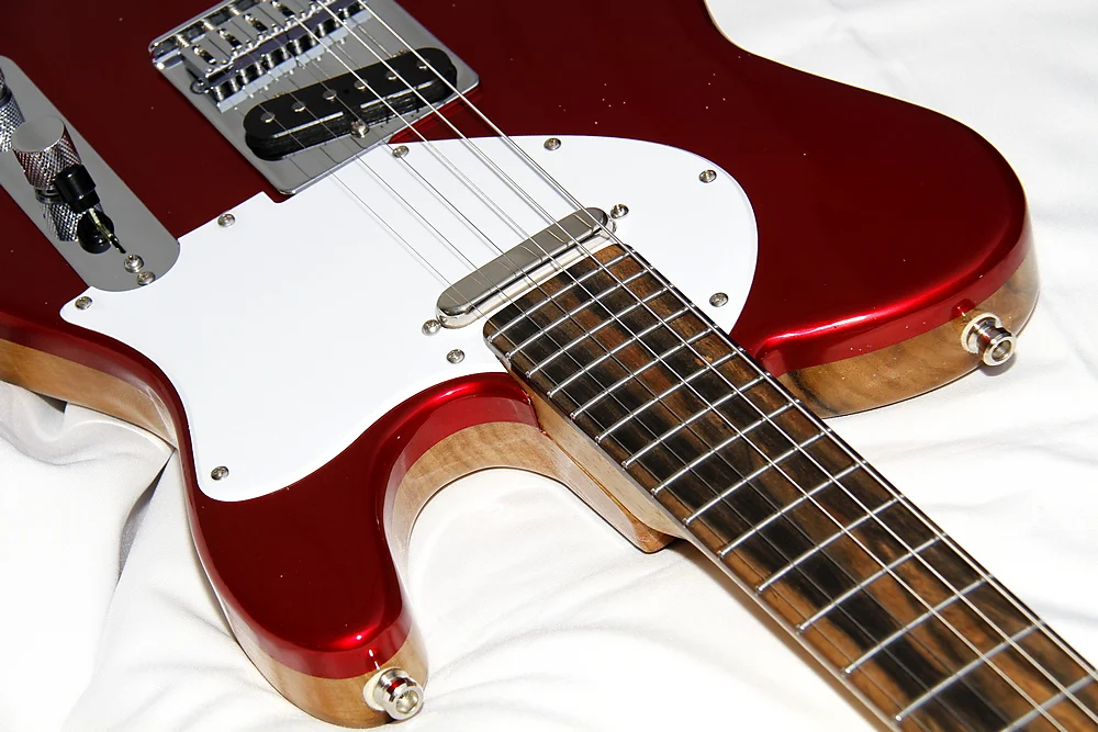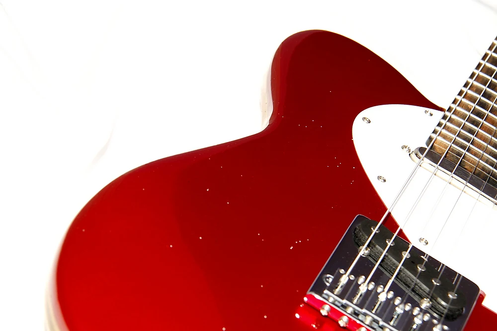 19 09 2025Cuerpo de korina de una sola pieza, acabado Organic Candy Red – Natural (OCR.Nat), mástil de korina acabado al aceite, diapasón de ébano exótico con radio 12″ y sin marcadores, 22 trastes de acero, cejuela de hueso y clavijero Gotoh SG381. Configuración de pastillas SS con un set Dreamsongs Pickups T-Modern, potenciómetros CTS Matched, condensador PIO, selector de 4 posiciones (4 Way Mod), jack de salida Pure Tone, puente Gotoh GTC201, y golpeador exclusivo LE.