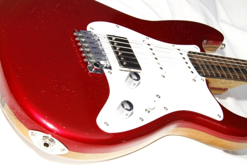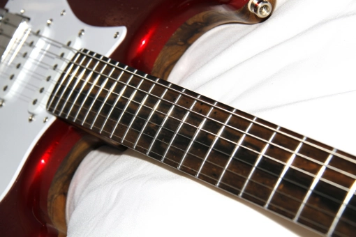 21 09 2025Cuerpo de korina de una sola pieza, acabado Organic Candy Red – Natural (OCR.Nat), mástil de korina acabado al aceite, diapasón de ébano exótico con radio 12″ y sin marcadores, trastes de acero, cejuela Graphtech Tusq XL y clavijero Gotoh SG381. Configuración de pastillas HSS con un set Dreamsongs Pickups (Strat Rod Magnet Humbucker/Contemporary/Contemporary), potenciómetros CTS Matched, condensador PIO, selector OAK Grigsby y jack de salida Pure Tone. Trémolo Gotoh NS510, y golpeador exclusivo LE.