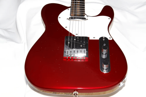 Cuerpo de korina de una sola pieza, acabado Organic Candy Red – Natural (OCR.Nat), mástil de korina acabado al aceite, diapasón de ébano exótico con radio 12″ y sin marcadores, 22 trastes de acero, cejuela de hueso y clavijero Gotoh SG381. Configuración de pastillas SS con un set Dreamsongs Pickups T-Modern, potenciómetros CTS Matched, condensador PIO, selector de 4 posiciones (4 Way Mod), jack de salida Pure Tone, puente Gotoh GTC201, y golpeador exclusivo LE.