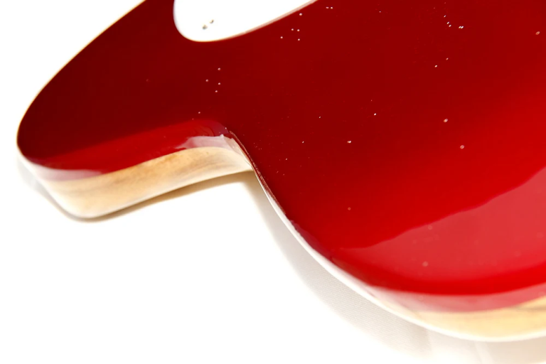 Cuerpo de korina de una sola pieza, acabado Organic Candy Red – Natural (OCR.Nat), mástil de korina acabado al aceite, diapasón de ébano exótico con radio 12″ y sin marcadores, 22 trastes de acero, cejuela de hueso y clavijero Gotoh SG381. Configuración de pastillas SS con un set Dreamsongs Pickups T-Modern, potenciómetros CTS Matched, condensador PIO, selector de 4 posiciones (4 Way Mod), jack de salida Pure Tone, puente Gotoh GTC201, y golpeador exclusivo LE.