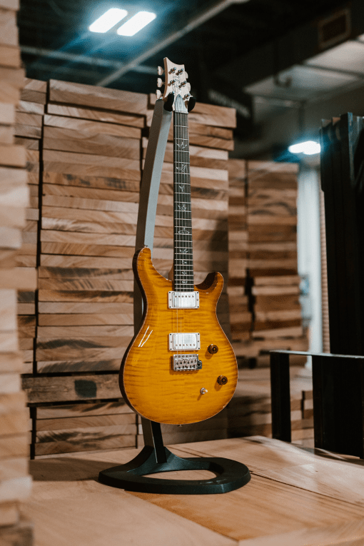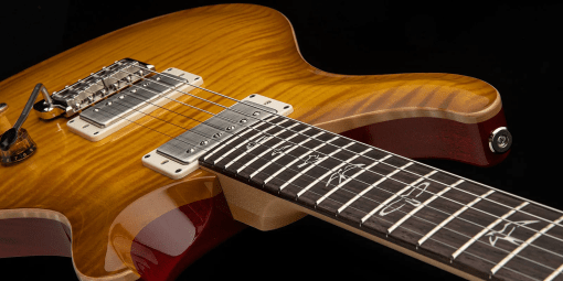 La PRS S2 Mira 594 cuenta con un mástil Pattern Thin de 22 trastes con una escala de 24.594″. El puente PRS stoptail con insertos de latón y los clavijeros PRS Phase III con varillas de latón anclan esta guitarra, fomentando la resonancia y un tono abierto, asegurando la estabilidad de la afinación.
