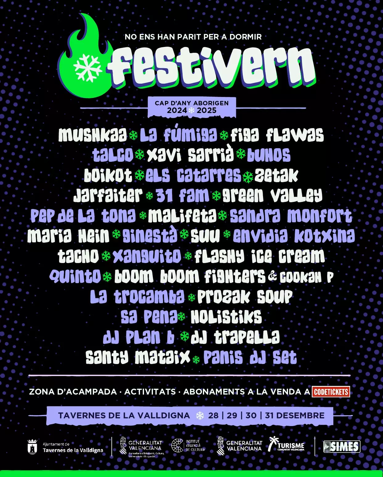 Etiquetas: 31 Fam, Buhos, Festivern, Festivern 2024-2025, Festivernet, Figa Fllawas, La Fúmiga, La Trocamba, Prozak Soup, Talco, Tavernes, Tavernes de la Valldigna, Xavi Sarrià, Zetak