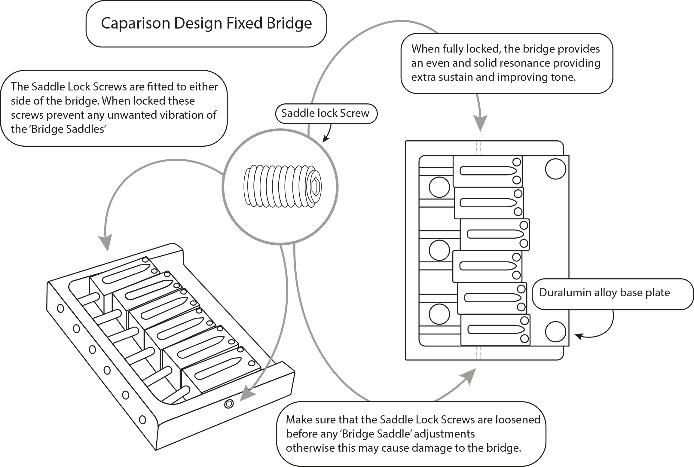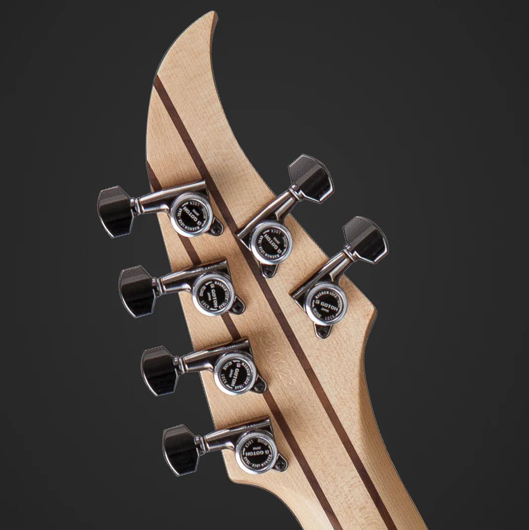 El modelo cuenta con un ángulo de pala de 15 grados, lo que permite que las cuerdas se asienten bajas contra la cejuela sin necesidad de una barra de tensión. Gracias a los afinadores Gotoh HAP, la altura de cada clavijero se puede ajustar según el calibre de la cuerda, lo que permite una posición óptima de cada cuerda en la cejuela.