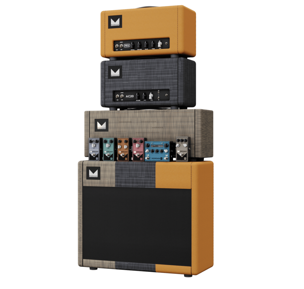 El Morgan AC20 es un amplificador monocanal de 20 vatios basado en un Vox AC30 antiguo. Proporciona tonos muy ricos y gruesos con ajustes de ganancia alta.