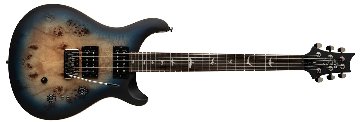 Las características destacadas de la SE Custom 24-08 Poplar Burl Limited Edition incluyen pastillas TCI «S» y una electrónica ampliada que ofrece ocho sonidos principales gracias a su par de mini interruptores y un selector de pastillas de tres posiciones. Tiene una escala de 25″, un cuerpo de caoba maciza y un mástil de arce encolado Wide Thin. Los diapasones son de palisandro. Encontrarás incrustaciones de pájaros en todos estos modelos.