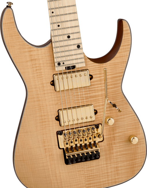 La guitarra tiene una configuración de pastillas HH que consiste en una pastilla de puente DiMarzio Tone Zone y una DiMarzio Air Norton en el mástil, ambas decoradas, como no, con cubiertas doradas. Cuenta con selector de pastillas de cinco posiciones, controles de volumen y tono, un trémolo Gotoh GE1996T-7 y clavijeros Charvel.