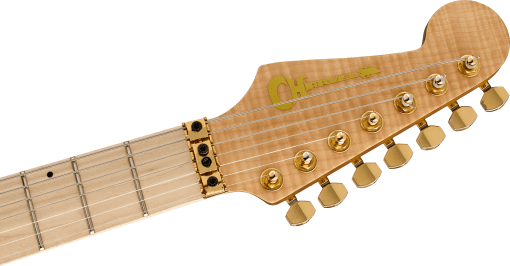 El mástil AZ Oval C es de arce roasted con un diapasón de ébano, 24 trastes de acero, marcadores madreperla, cejuela Graph Tech y un clavijero Gotoh MG-T con bloqueo. Todo el hardware es dorado, incluyendo el trémolo Gotoh T1502.