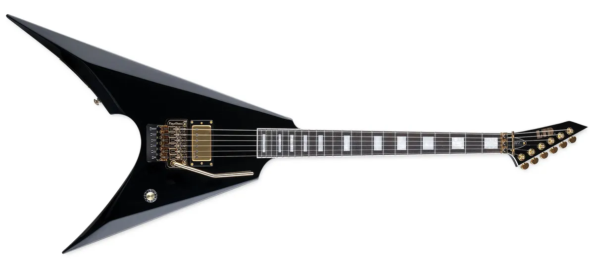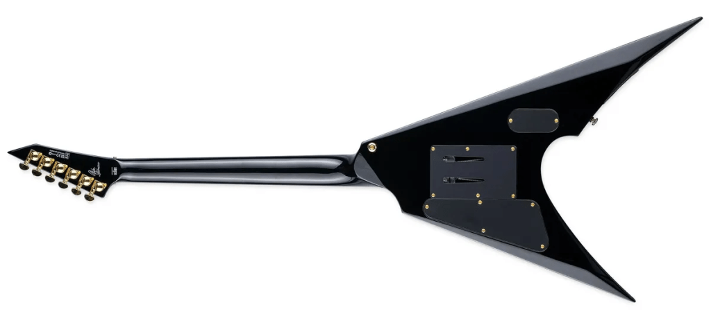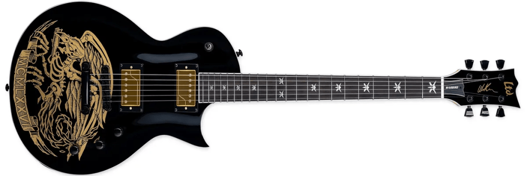 La LTD Mike Schleibaum MSV-1 no se aleja mucho de sus modelos signature anteriores. Tiene una humbucker EMG-JH James Hetfield en el puente, un Floyd Rose 1000 Series y, con el acabado Gloss Black, los herrajes dorados y los bloques perlados en un diapasón de ébano, casi tiene un aspecto de Gibson Les Paul Custom.