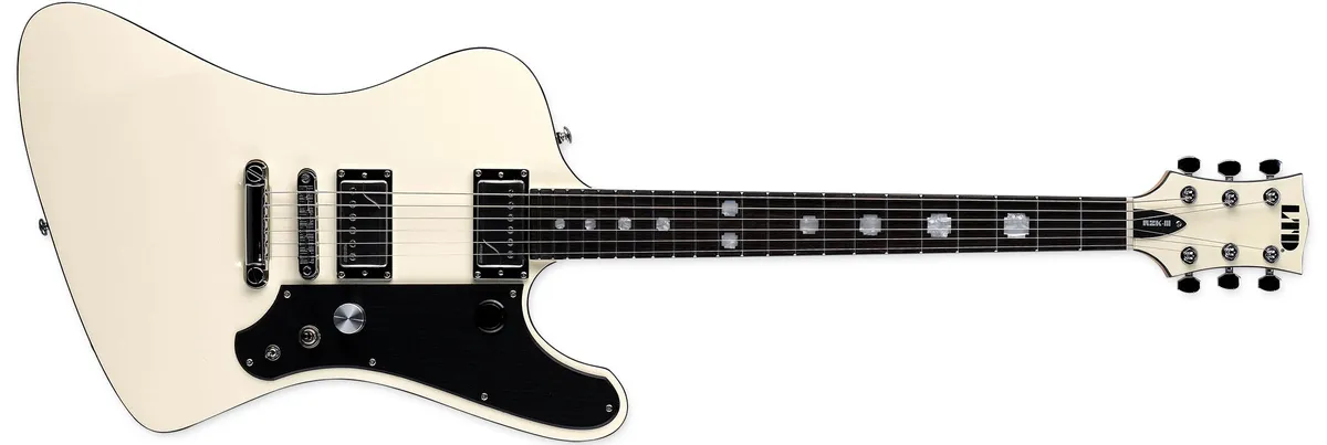 La nueva Phoenix de Richard Kruspe con cuerpo offset llega en Olympic White, un acabado que contrasta muy bien con el golpeador negro.