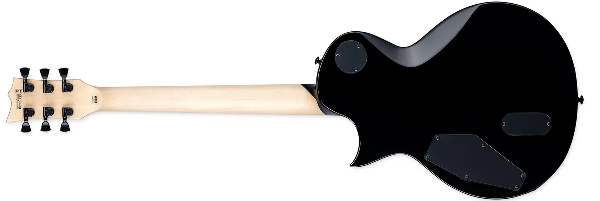 La MK-EC FR comienza con la familiar forma single cut de la ESP Eclipse. El cuerpo tiene la parte superior plana, diseñado para pura velocidad sin biseles ni rebajes comfort, y presenta binding negro en el cuerpo, el mástil y la pala.