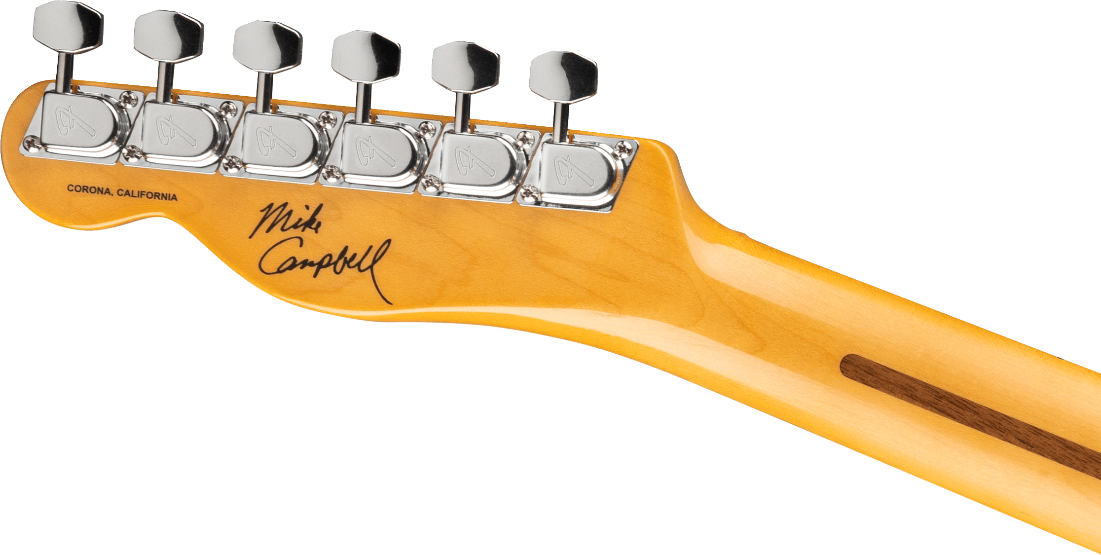 Además de su llamativo acabado Blue Paisley Relic, está completamente equipada con un mástil de arce ovalado «C» de los años 60 con diapasón de arce laminado redondo, pastillas Seymour Duncan Custom Shop Hand-Wound Lost Paisley y un sistema Glaser «G» Bender para unos bendings fluidos, similares a los de una guitarra de pedal.