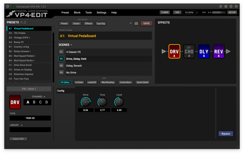 Remontándose al VP4, que solo incluía efectos, ofrece cuatro pedales configurables, cuatro perillas de parámetros universales y una serie de controles para navegar por menús, presets y más.