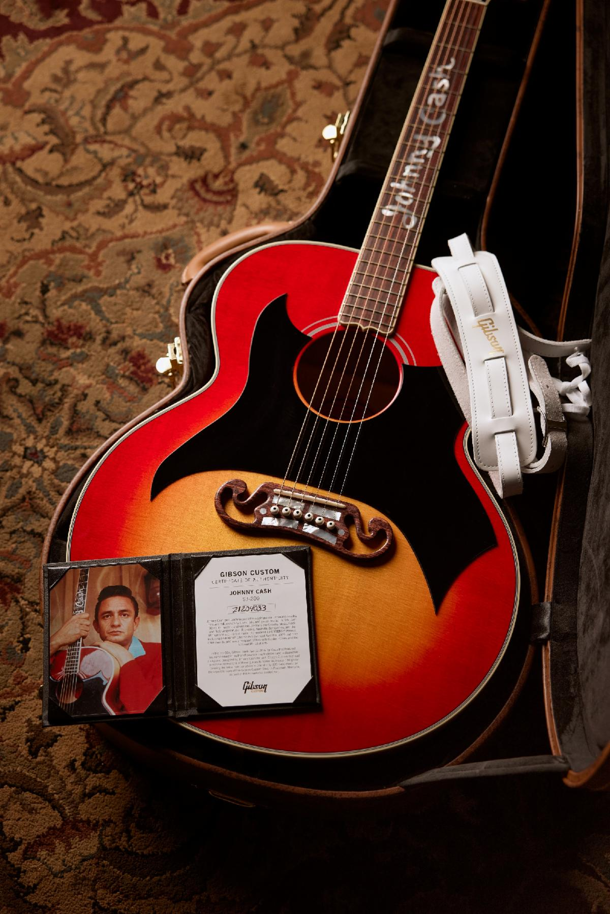 A finales de la década de1950, Gibson fabricó dos SJ-200 para Cash que tenían su nombre incrustado en nácar en el diapasón y un golpeador distintivo diseñado por el propio Johnny Cash. Gibson Custom ha lanzado recreaciones de estas guitarras para honrar su legado. La Johnny Cash SJ-200, de Gibson Custom, recrea su querido y excepcionalmente raro modelo que lo distinguió a finales de la década de 1950 con su llamativo acabado enVintage Cherry Sunburst, e incluye un estuche rígido personalizado Johnny Cash. Para esta extraordinaria edición limitada, sólo cien de estos hermosos y muy solicitados instrumentos fueron hechos a mano por los expertos luthiers de Gibson Custom en Bozeman (Montana) y ya están disponibles por $14.999.
