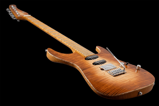 El modelo cuenta con un ángulo de pala de 15 grados, lo que permite que las cuerdas se asienten bajas contra la cejuela sin necesidad de una barra de tensión. Gracias a los afinadores Gotoh HAP, la altura de cada clavijero se puede ajustar según el calibre de la cuerda, lo que permite una posición óptima de cada cuerda en la cejuela.