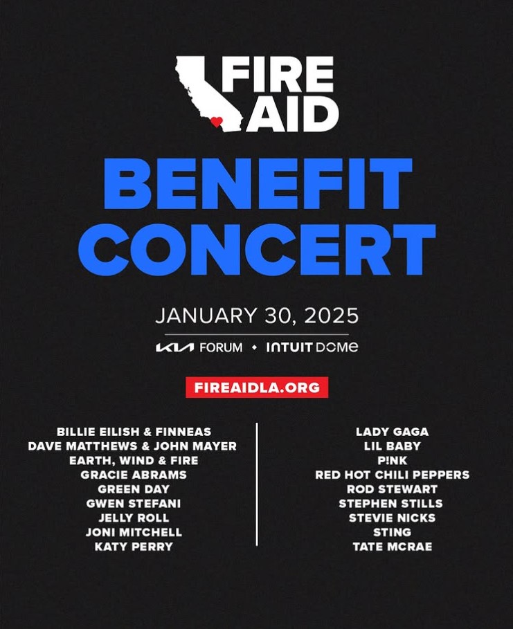 Una gran cantidad de íconos de la música, incluido el dúo debutante Dave Matthews y John Mayer, Joni Mitchell, Billie Eilish y Finneas, Lady Gaga, Red Hot Chili Peppers, Sting, Stephen Stills y Green Day, se unirán para el megaevento de recaudación de fondos FireAid, para apoyar los esfuerzos de socorro para las víctimas de los incendios forestales de Los Ángeles.