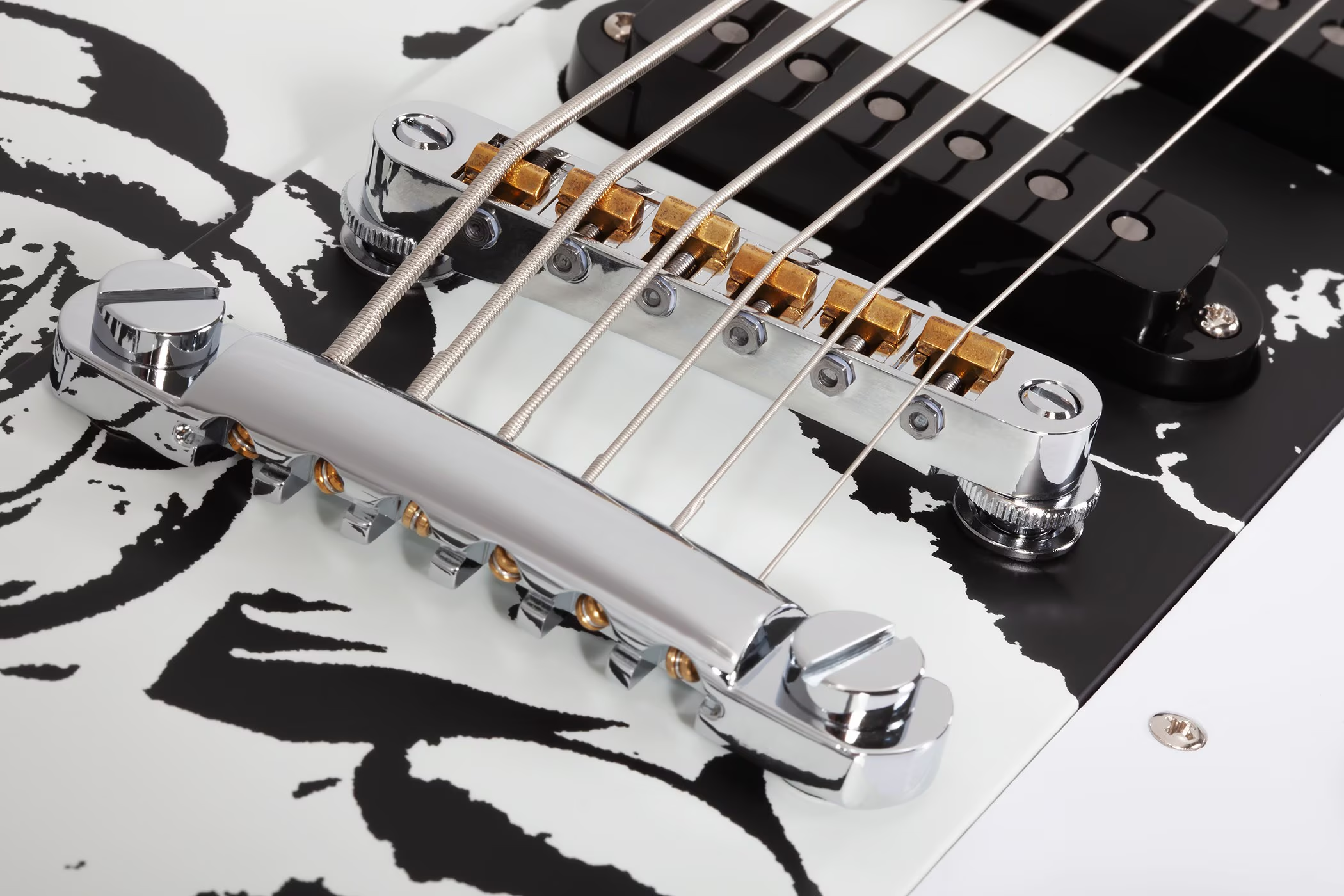 «Es mi cableado característico, pero con esta [pastilla central] siempre activa», explica. “Y eso hace que el sonido sea inmediatamente notablemente diferente, y a mi parecer, lo acerca más al sonido de una Stratocaster, lo cual, curiosamente, significa que esta guitarra se comporta de forma muy distinta al saturarla.”